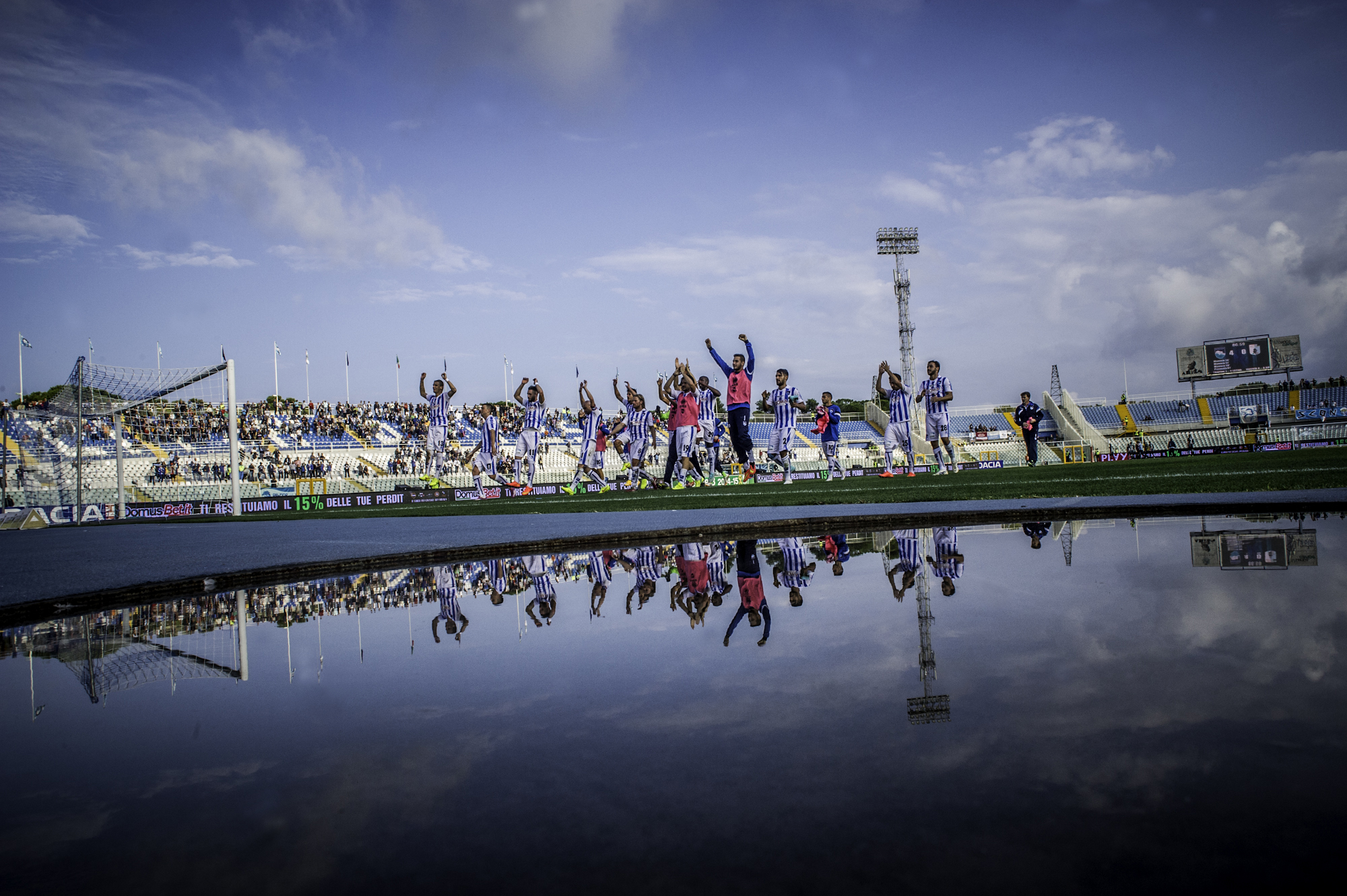 Contro la Virtus Entella dell’ex capitano dei biancazzurri, Marco Sansovini, giunge la prima vittoria del campionato per i ragazzi di Marco Baroni che finalmente possono festeggiare con la i tifosi dello stadio Adriatico.